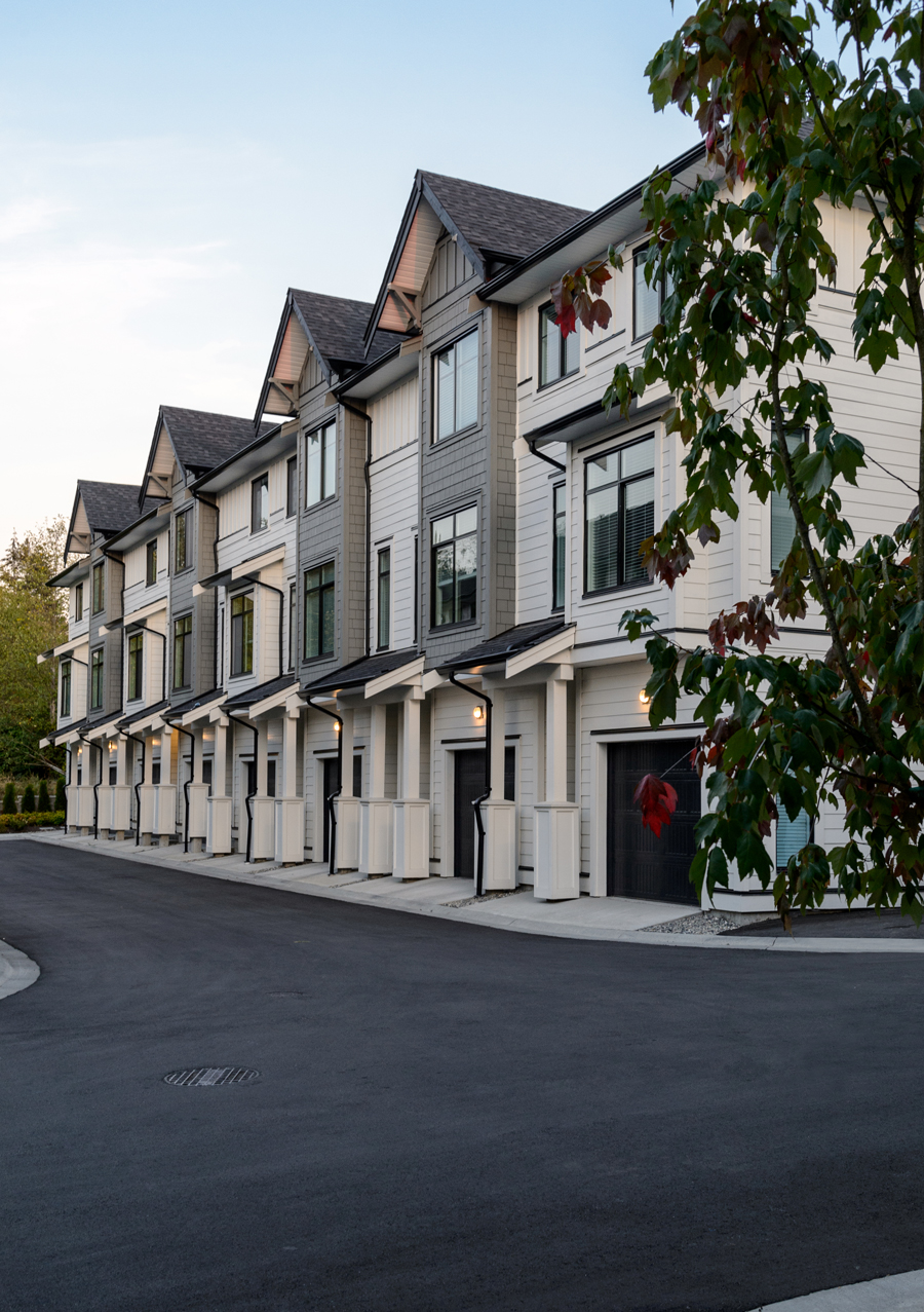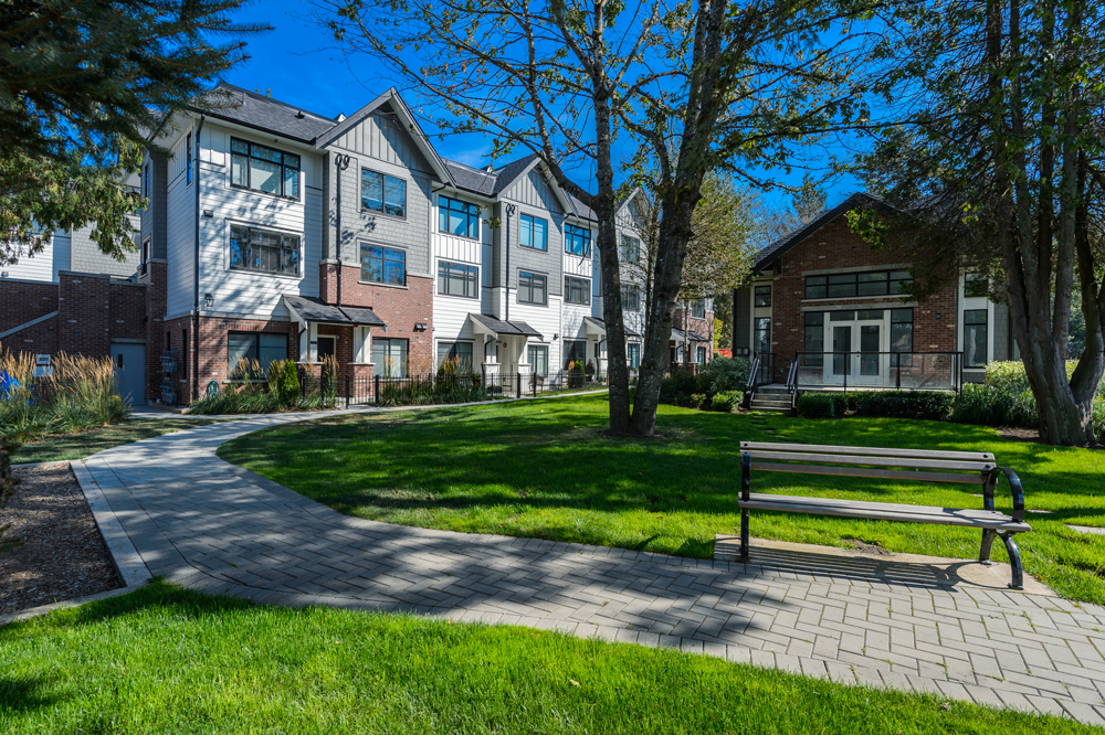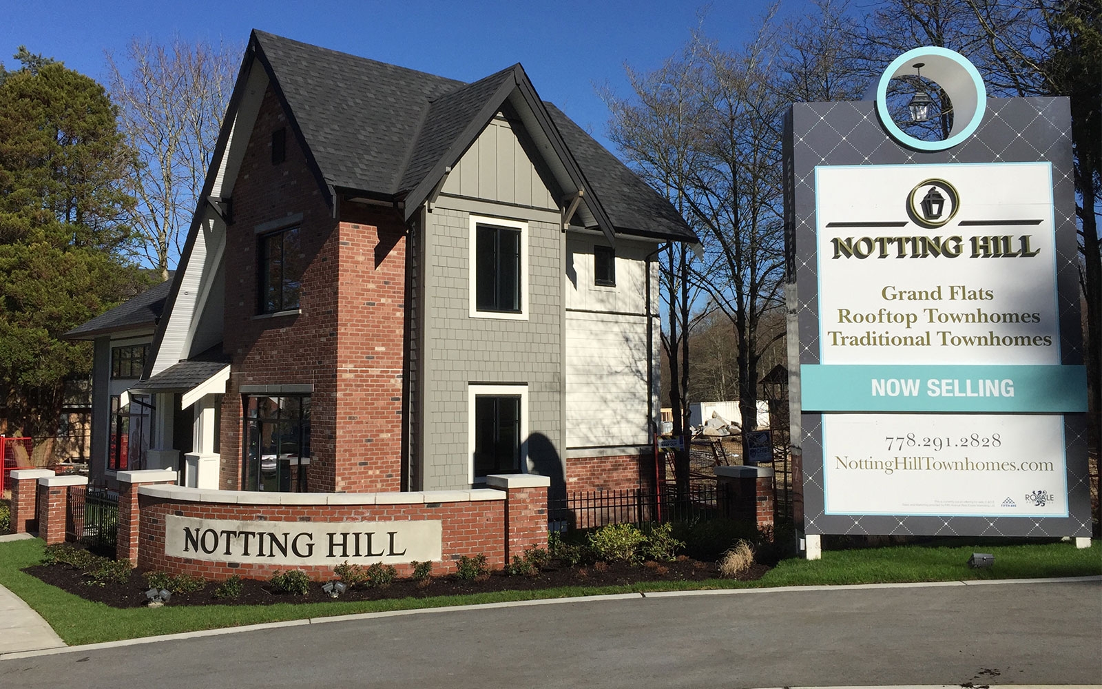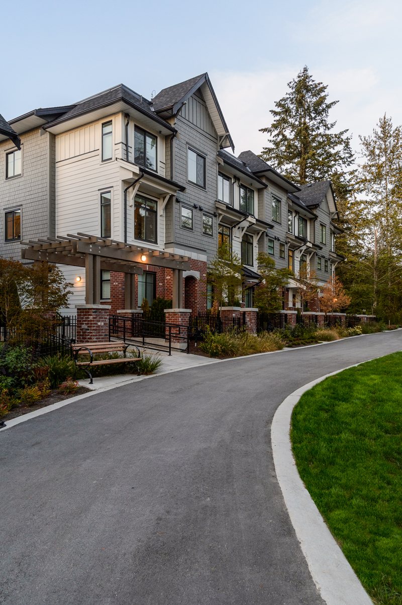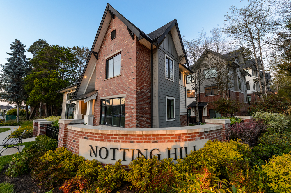 A collection of 49 Townhomes and Grand Flats south of the Fraser River in the Grandview neighbourhood of South Surrey, BC. Notting Hill was inspired by the timeless elegance of traditional British design and the natural west coast setting. A classically European inspired design; with brick accents and distinctive exterior lighting that is accentuated with a beautiful outdoor courtyard, which lends space and light. Carefully shaped landscaping with both new and existing greenery adds a subtle but rich finish. The development offers a variety of unit layouts, including Grand Flats; single level residences with a street facing entrance, Stacked Flats; 2-storey Townhomes stacked above parking and community foundation, Traditional 3-storey Townhomes with spacious garages for parking, and Rooftop Townhomes; 2-storey townhomes with rooftop patios for entertainment located directly above the Grand Flats.