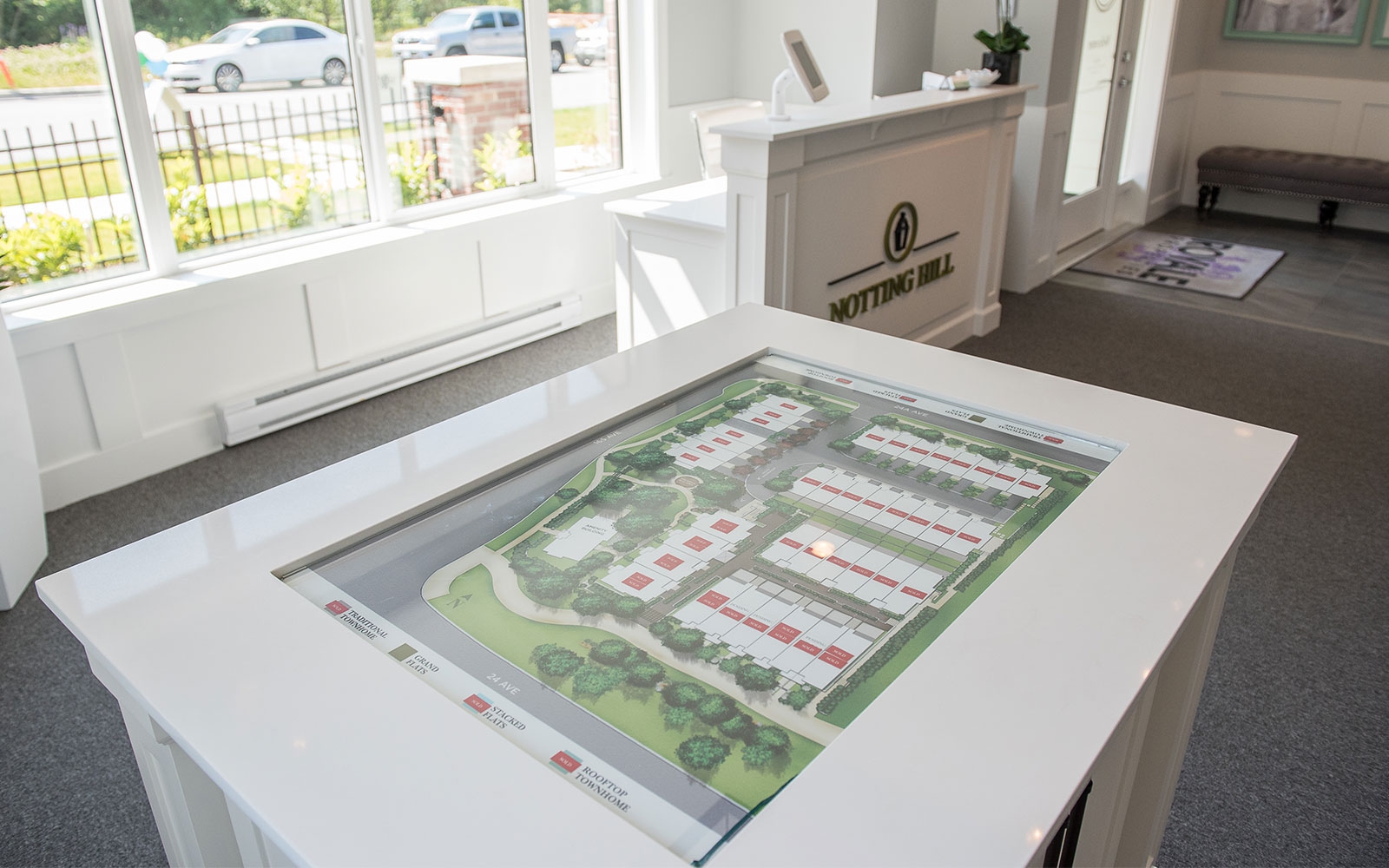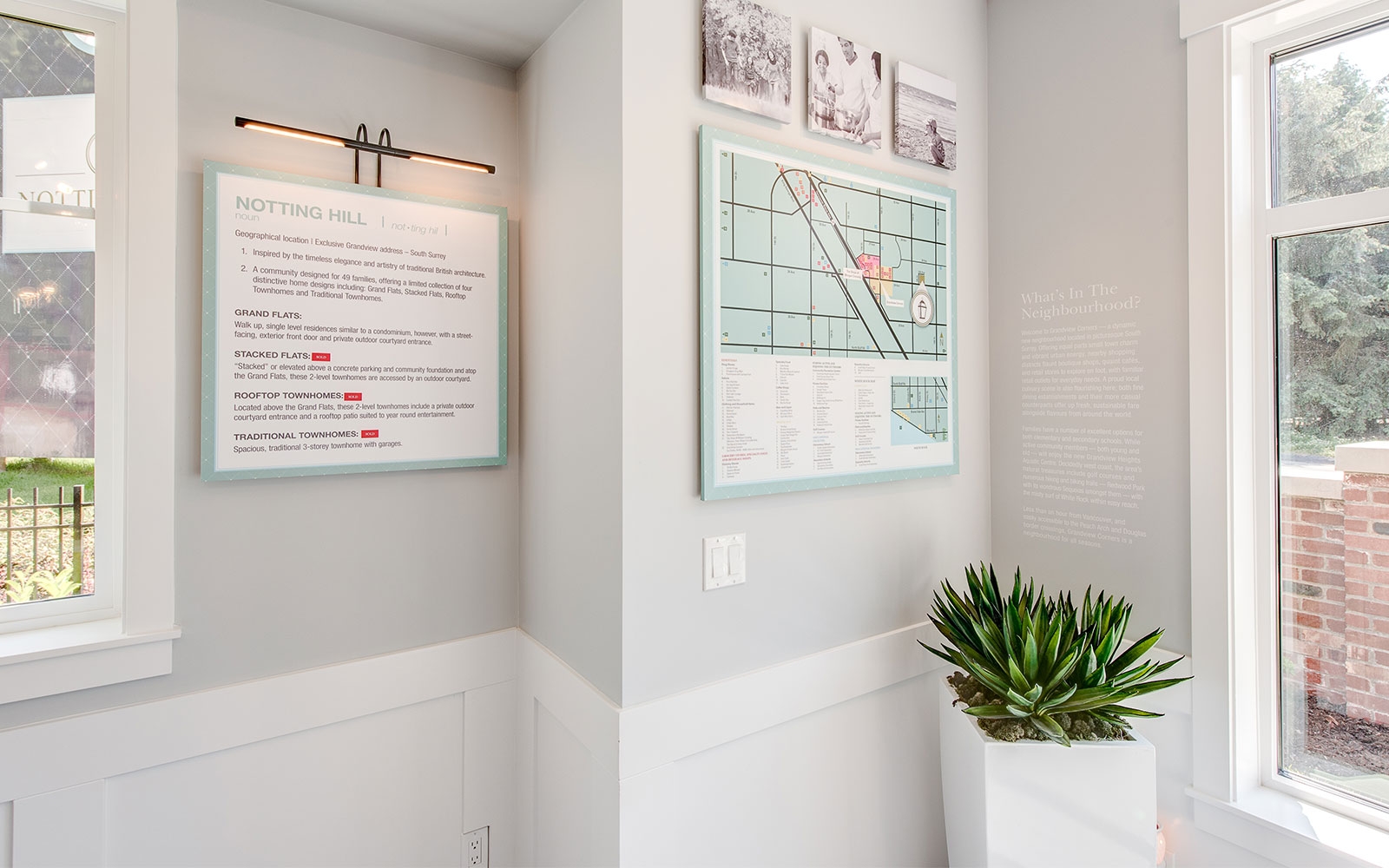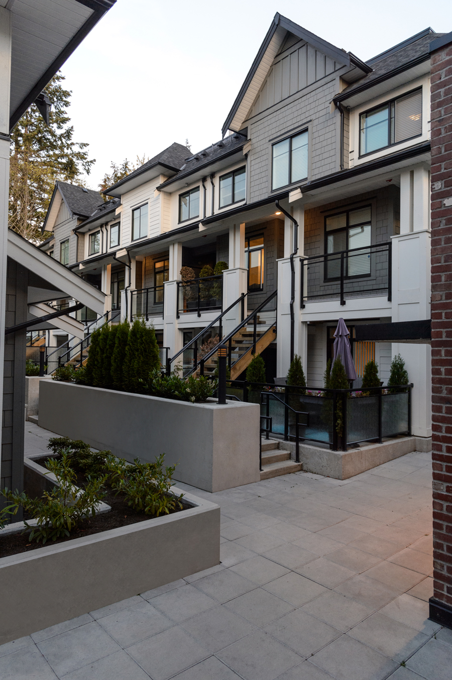 A collection of 49 Townhomes and Grand Flats south of the Fraser River in the Grandview neighbourhood of South Surrey, BC. Notting Hill was inspired by the timeless elegance of traditional British design and the natural west coast setting. A classically European inspired design; with brick accents and distinctive exterior lighting that is accentuated with a beautiful outdoor courtyard, which lends space and light. Carefully shaped landscaping with both new and existing greenery adds a subtle but rich finish. The development offers a variety of unit layouts, including Grand Flats; single level residences with a street facing entrance, Stacked Flats; 2-storey Townhomes stacked above parking and community foundation, Traditional 3-storey Townhomes with spacious garages for parking, and Rooftop Townhomes; 2-storey townhomes with rooftop patios for entertainment located directly above the Grand Flats.